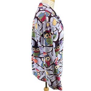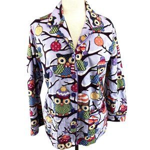 Nick & Nora Medium 2 Piece Flannel Pajamas Owls Purple Long Sleeves Warm