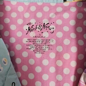Nick & Nora Pajama Shirt Womens Large Blue Sock Monkey Top Button Up AOP