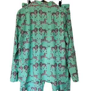 Nick & Nora Pajamas Zebras Mint Green Sz XL Lightweight 100% Cotton Sleepwear