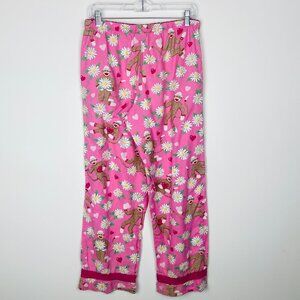 Nick & Nora Pink Sock Monkey Flower Print Flannel PJ Pajama Pants, Size S