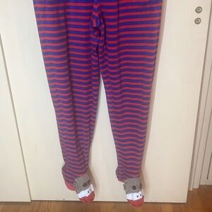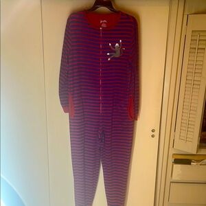 Nick & Nora Red and Blue Footies One Piece sock monkey Jammie size medium