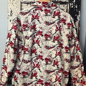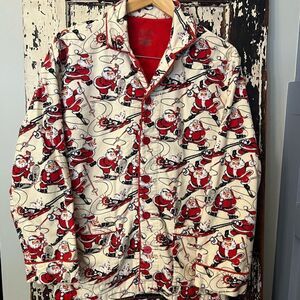 Nick & Nora Retro Santa Christmas Holiday XC skiing sleepwear. Cozy cute comfy.