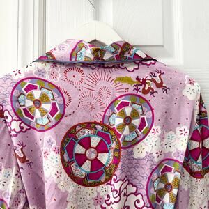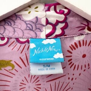 Size S/M from Nick & Nora. 100% silk. Pink purple eastern Asian inspired dragon Chinese New Year mid length tie robe. Preowned in good condition with no stains or tears.