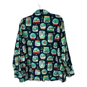 Nick & Nora Snow Globe Sock Monkey Pajama Top Blue EUC Sz XXL