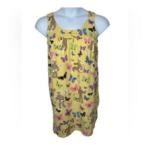 Nick & Nora Sock Monkey Butterfly Yellow Nightgown Sleep Shirt Size Small