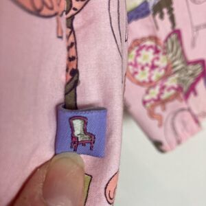 Rare Baroque Chairs print. Buttons have brand name. Pretty hot pink piping. Mint condition. Pit to pit 22” shoulder to hem 27”.