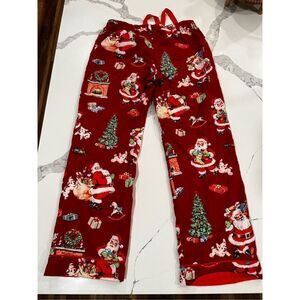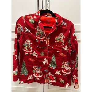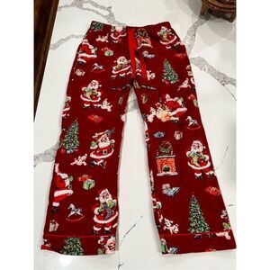 Nick & Nora Vintage Flannel Pajama Set Old-Time Santa Puppies Christmas Sz XS/S