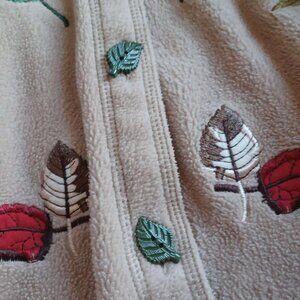 Super adorable cozy, cottagecore, autumnal jacket ♡ Has the CUTEST buttons shaped like leaves and is pretty soft for polyester. Is large in size. ♡
