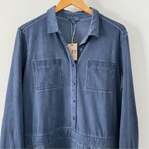 Nick + Zoe Convertible Sleeve Pocket Dress Women's Large Parisian Blue Stretchy
