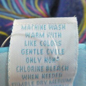 Nick and Nora Pajama Pants Blue Peacock Feather Hearts Drawstring Bottoms. Pockets. Blue Pink Purple Yellow Green. Cotton plus Spandex. Machine Wash. Tagged Size S Small. May also fit a Medium.