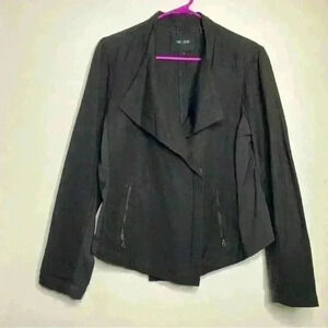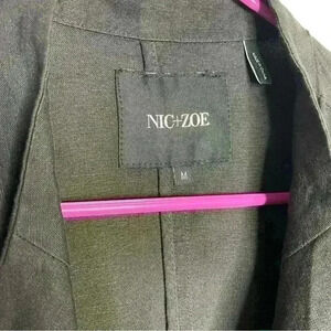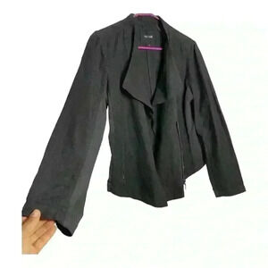 Nick and Zoe black linen blend angled front fashion blazer, zipper closed or leave open, front zippered pockets, slight stretch in the arms blazer/jacket. In very good preowned condition.
