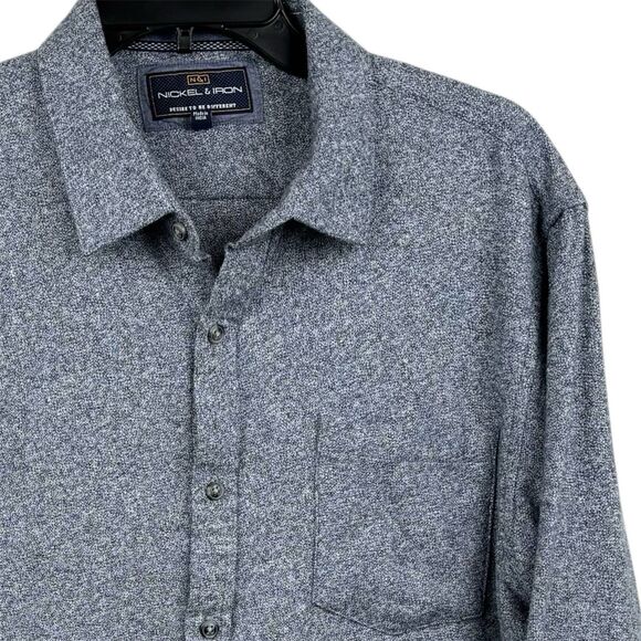 Nickel & Iron Men’s Large Button Front Blue Mottled Long Sleeve Shirt Cuff