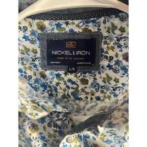 Nickel & Iron Size large men’s floral button down shirt with collar blue and green flowers cotton