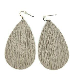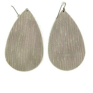 Nickel & Suede Beige Grey Textured Leather Teardrop Earrings Large 3"