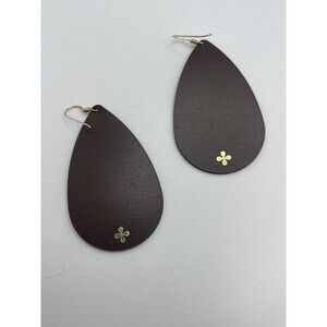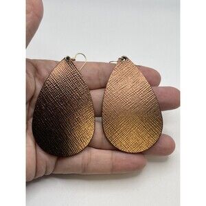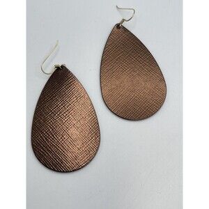 Nickel & Suede Textured Metallic Cocoa Brown Leather Teardrop Earrings New