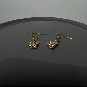 Nickel-Free Handmade Mini Rose Drop Earrings – Gold with Crystal Leaves