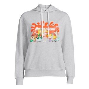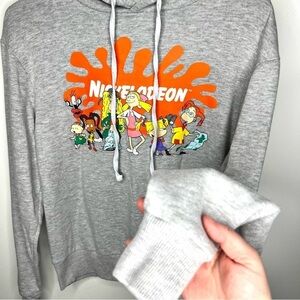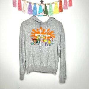 Title: Nickelodeon 90’s Cartoon Graphic Logo Pullover Gray Hooded Sweatshirt Size Medium