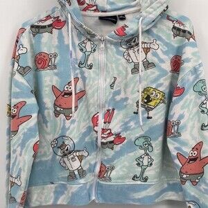 Nickelodeon Cropped Hoodie Sweatshirt Full Zip Medium SpongeBob Gary