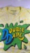 This is a Double Dare / Nickelodeon crop top in size Medium, featuring a yellow tie-dye design and bold “Double Dare” graphic across the front.