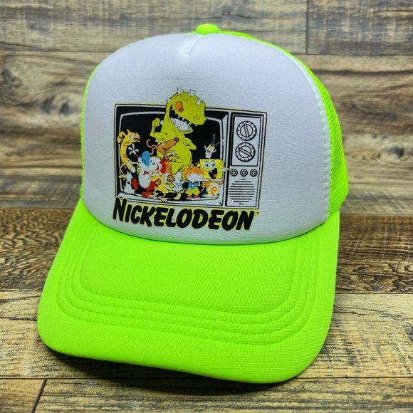 Nickelodeon Mens Trucker Hat Neon Green Snapback 90s Retro TV Baseball Cap