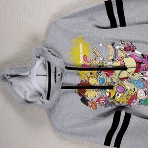 Nickelodeon Multi-Character Cartoon Gray Long Sleeve Pullover Hoodie Sweatshirt