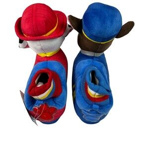 Nickelodeon Paw Patrol Chase & Marshall Toddler 11/12 NWT Plush 3D Slippers