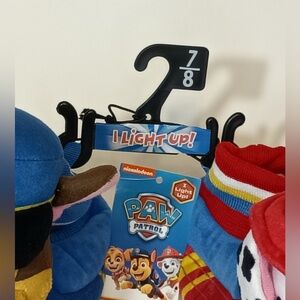 Paw Patrol slippers with light-up feature. Includes vibrant blue, red, and yellow colors. Perfect for fans.