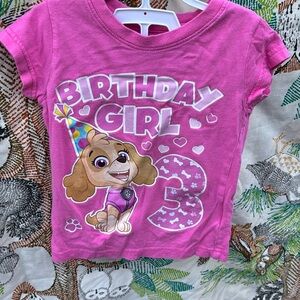 Nickelodeon Paw Patrol Pink SS 3rd Birthday Girl T-Shirt with Cartoon Design 2T
