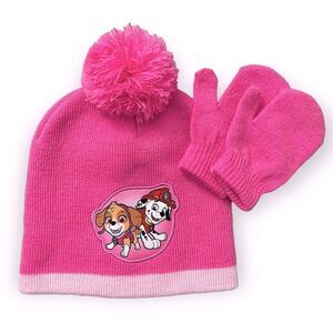 Nickelodeon Paw Patrol Skye & Marshall Pink Pom Pom Knit Beanie and Mittens OS