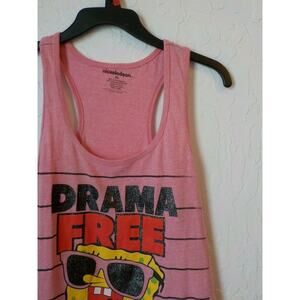 Nickelodeon Pink Tank Tee Teens XL DRAMA FREE Sponge Bob Square Pants Graphic