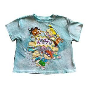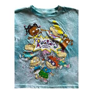 Nickelodeon RUGRATS Cropped TEE Shirt Small Teal Tie Dye Cartoon Characters Top- New Condition!