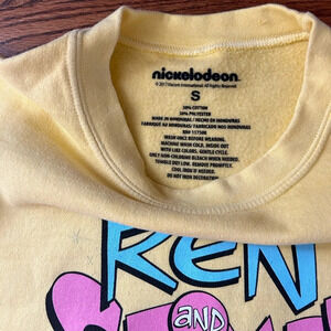 Nickelodeon sweatshirt, Ren and Stimpy crewneck, retro cartoon sweater, yellow graphic pullover, vintage style sweatshirt, 90s Nickelodeon apparel, nostalgic cartoon top, unisex fleece crewneck, cozy fall winter sweatshirt, graphic loungewear, relaxed fit sweater, classic cartoon gift, Nickelodeon fan shirt, cartoon character sweater, pop culture sweatshirt, soft cotton blend pullover, small yellow crewneck, retro TV show merch, throwback style sweatshirt