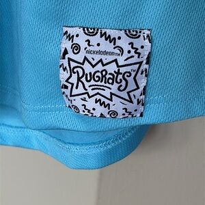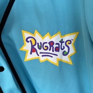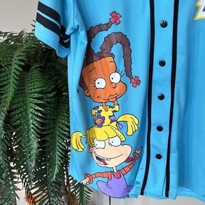 Nickelodeon Rugrats Blue Button Down Short Sleeve Baseball Jersey 90s Y2K Top.