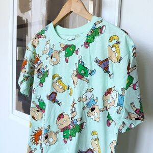 Keywords: Nickelodeon, Rugrats, 90s cartoons, unisex t-shirt, graphic print, green, casual wear, crew neck, all-over print, official merchandise, spring fashion, machine washable, pre-owned, comfortable, blended fabric.