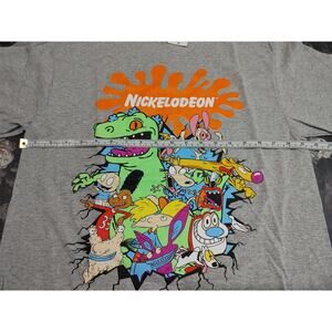 Nickelodeon Splatter 90s Characters T-Shirt Pullover Crew Neck Gray Mens M NWT