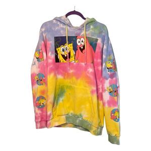 Nickelodeon Sponge Bob Patrick Tie Dye Hoodie Sweatshirt Pink Yellow Blue Fleece