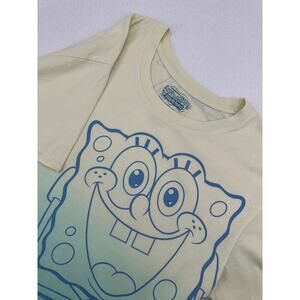 Nickelodeon Sponge Bob Square Pants Yellow Teal Ombre Crop T Shirt XL