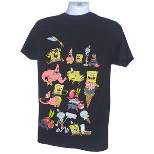SpongeBob t-shirt, Patrick Star tee, cartoon apparel, unisex clothing, casual wear, Nickelodeon merch, graphic tee, black t-shirt, cotton top, M size shirt, fun outfit, animated characters, summer fashion, cartoon tee,