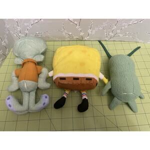 This lot includes three stuffed toys of Nickelodeon's SpongeBob SquarePants series. The characters included are Plankton, Squidward, and Patrick. These toys are perfect for all occasions and would make a great addition to any fan's collection. The toys are small, measuring 6-14 inches, and have a multicolor design. The brand of these toys is Viacom and they belong to the character family of SpongeBob SquarePants.