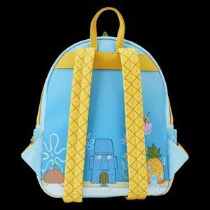 Colorful backpack with a pineapple house design. Ideal for kids' adventures.