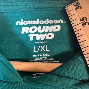 Round Two Vintage and Nickelodeon, limited edition drops with art by Rakeem Miles. Cut in a relaxed and super oversized fit with dropped shoulders and a cozy hood at the back.