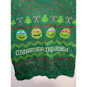 Nickelodeon Ugly Christmas Sweatshirt Large Ninja Turtle Digital Cowabunga Tacky