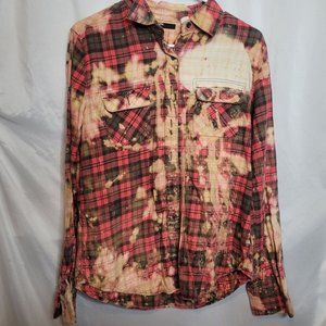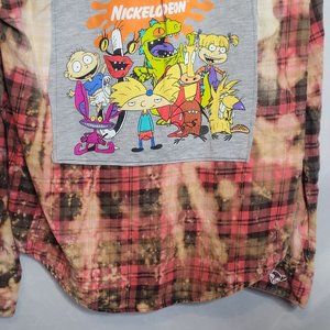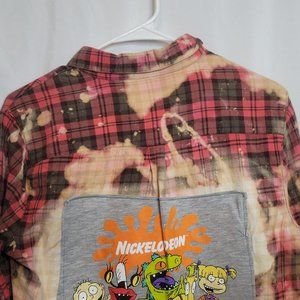 Nickelodeon Upcycle Bleached Flannel Shirt Red Green Plaid Size Med