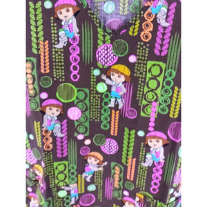 Nickelodeon Women's Scrub Top Size Small Dora The Explorer Brown Green Pink