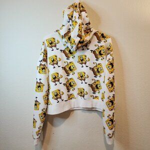 Nickelodeon XL Sponge Bob White Cropped Oversize Hoodie Sweatshirt JUNIORS