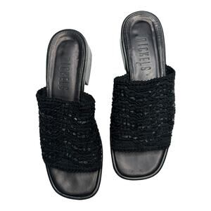 Nickels 90's Vintage Black Raffia Slide Mules Size 6