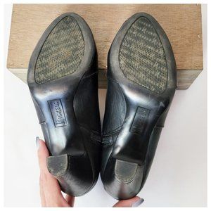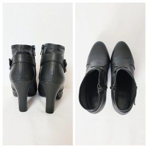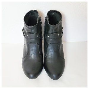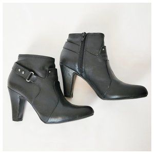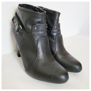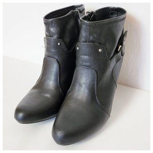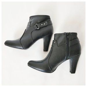 Nickels Ankle Booties Black Vegan Leather High Heel Round Toe Moto Style Boots