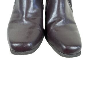 Excellent preowned condition, aside from light scuffing on toes & heel areas (pictured), light wear on soles. Nickels Park Brown Faux Leather Heeled Slip On Square Toe Booties. Approx. measurements: Length 11", heel 3.25". Women's Size 9