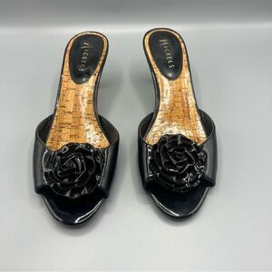 Nickels Stevie Black Flower Open Toe Heels Sandals. Very good pre-owned condition!