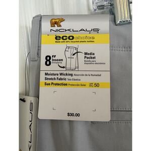 Nicklaus Eco Choice Men's Golf Shorts In Light Gray with 8-inch Inseam Size 40